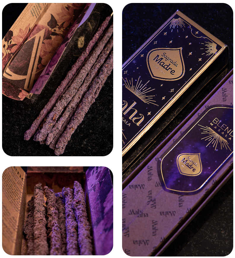 Aceste bețișoare de tămâie Masala surprind esența elementelor naturale precum soarele, luna și stelele. Combinația de ingrediente creează o aromă care poate transforma orice încăpere într-un spațiu special. În miezul lor poartă dulcea esență a mierii de trestie și parfumul delicat al florilor. Se crede că aromele lor captivante poartă semnificații simbolice importante.