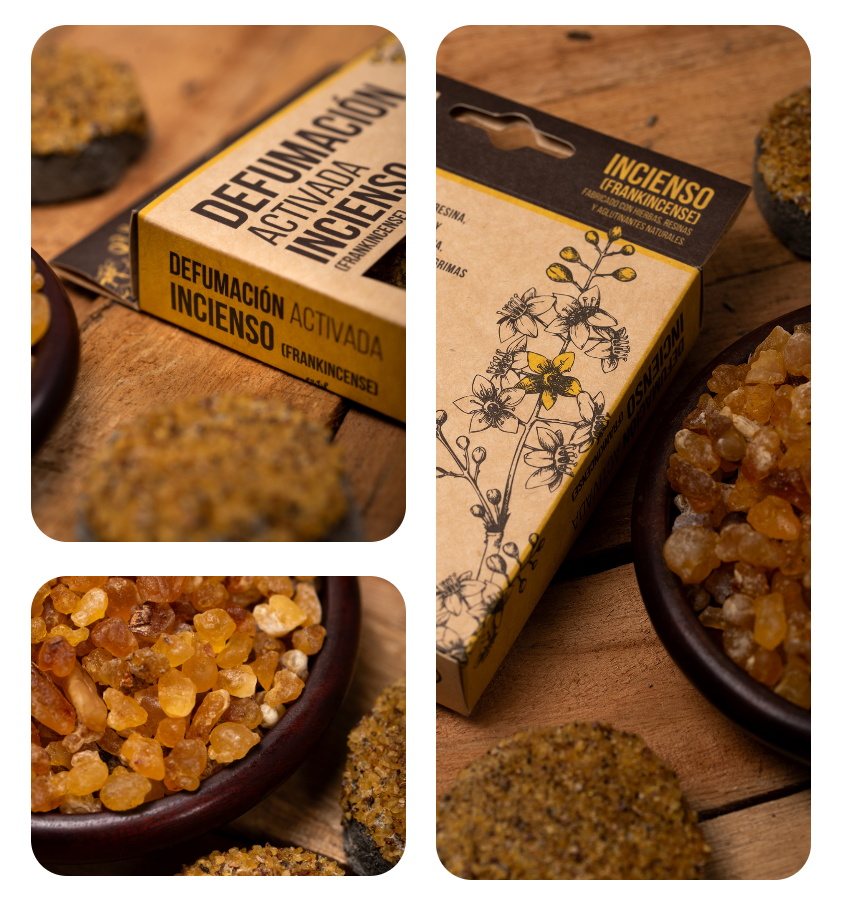Tămâia – Olibanul conectează lumea terestră cu cea spirituală. Această aromă cerească inundă spațiul cu iubire, pace și prosperitate. Parfumul său favorizează deschiderea conștiinței și evoluția interioară, amplificând conexiunea cu Divinitatea.