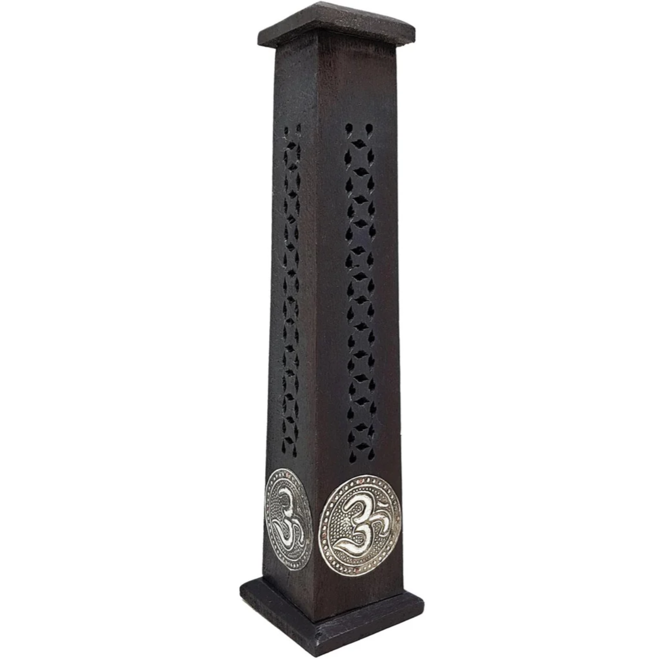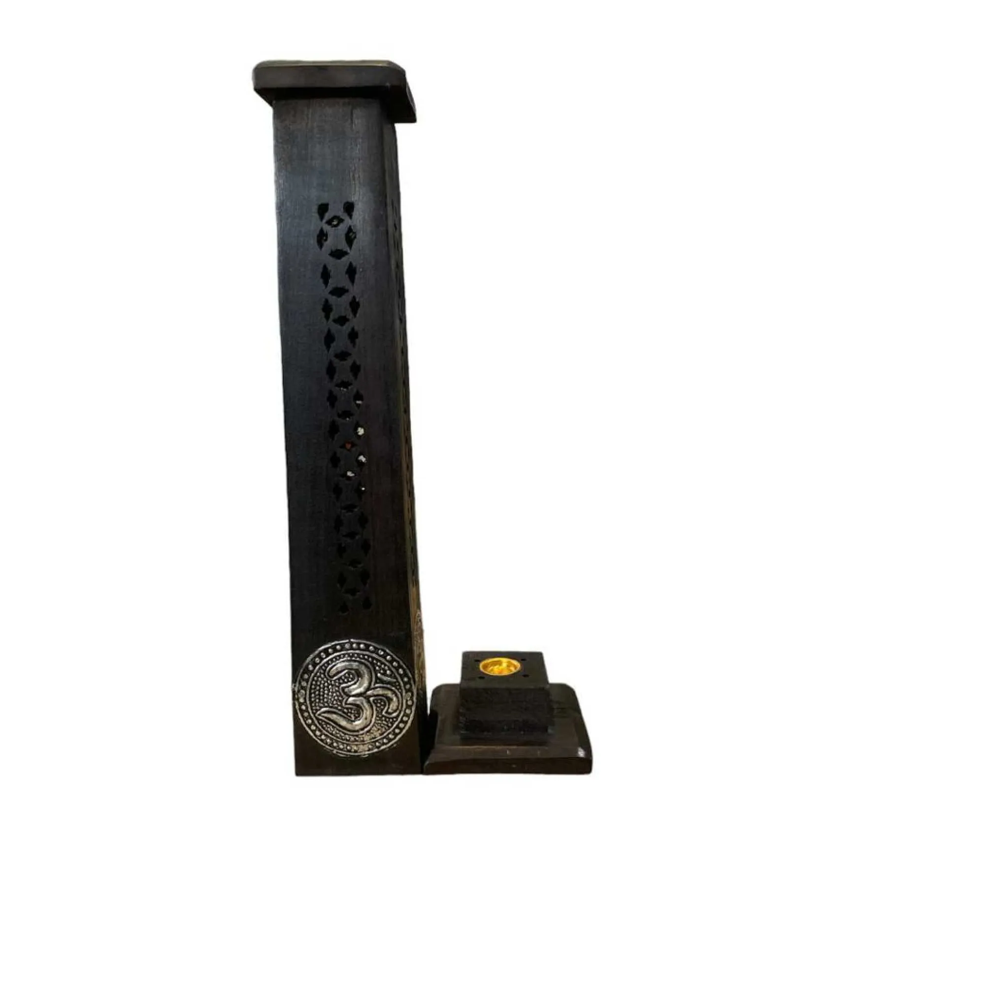 Acest suport în formă de turn poartă gravura simbolului Ohm, element vizual care celebrează tradiția într-un mod discret. Sculptat din lemn natural el devine un stâlp al liniștii în spațiul tău. Simbolul Ohm, sunetul primordial al creației, ne amintește de respirația profundă, de revenirea la esență și de ritmul firesc al vieții.